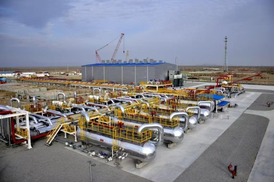 在土庫(kù)曼斯坦卡拉庫(kù)姆沙漠深處的阿姆河右岸氣田,集氣站高高聳立,輸氣管道縱橫交錯(cuò)——這里是中國(guó)—中亞天然氣管道的重要?dú)庠吹亍?/p>