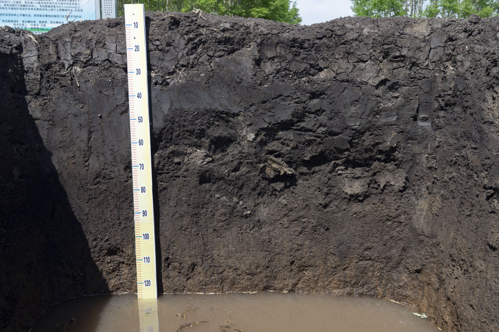 黑龍江省海倫市前進(jìn)鎮(zhèn)自新村農(nóng)業(yè)科技示范基地內(nèi)一處用來觀測(cè)黑土層厚度的土壤剖面(2022年5月23日攝)。