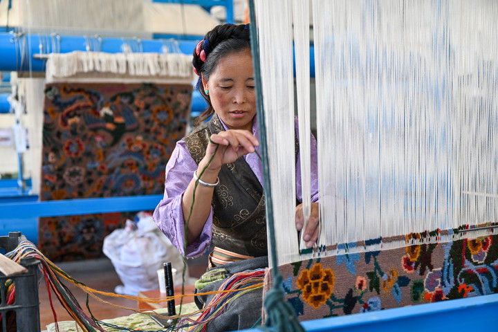 2025年7月18日,江孜藏毯文化發(fā)展有限責(zé)任公司的員工在生產(chǎn)車間內(nèi)編織藏毯。西藏日喀則市江孜縣是著名的藏毯(藏族稱為“卡墊”)之鄉(xiāng),織毯歷史悠久。藏族卡墊織造技藝于2006年被列入國家級非物質(zhì)文化遺產(chǎn)代表性項(xiàng)目名錄。近年來,江孜藏毯在守護(hù)傳統(tǒng)技藝的同時(shí)積極創(chuàng)新,通過建立合作社、開辦技能培訓(xùn)班等方式擴(kuò)大靈活就業(yè)規(guī)模,讓更多人在家門口織藏毯增收。