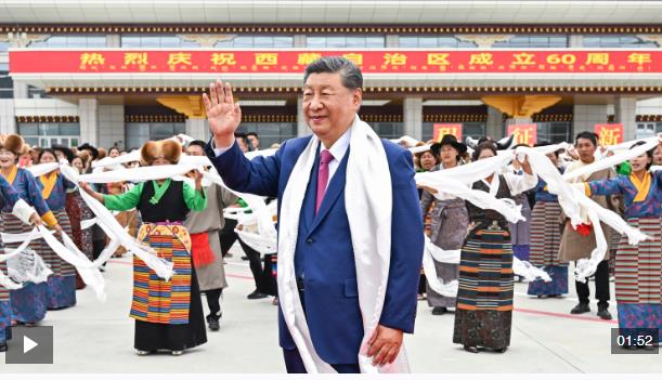 中共中央總書記、國家主席、中央軍委主席習近平率中央代表團20日中午乘專機抵達拉薩,出席西藏自治區(qū)成立60周年慶祝活動。習近平等在機場和拉薩市區(qū)受到西藏各族群眾的熱烈歡迎。中共中央政治局常委、全國政協(xié)主席、中央代表團團長王滬寧,中共中央政治局常委、中央辦公廳主任蔡奇等同機抵達。
