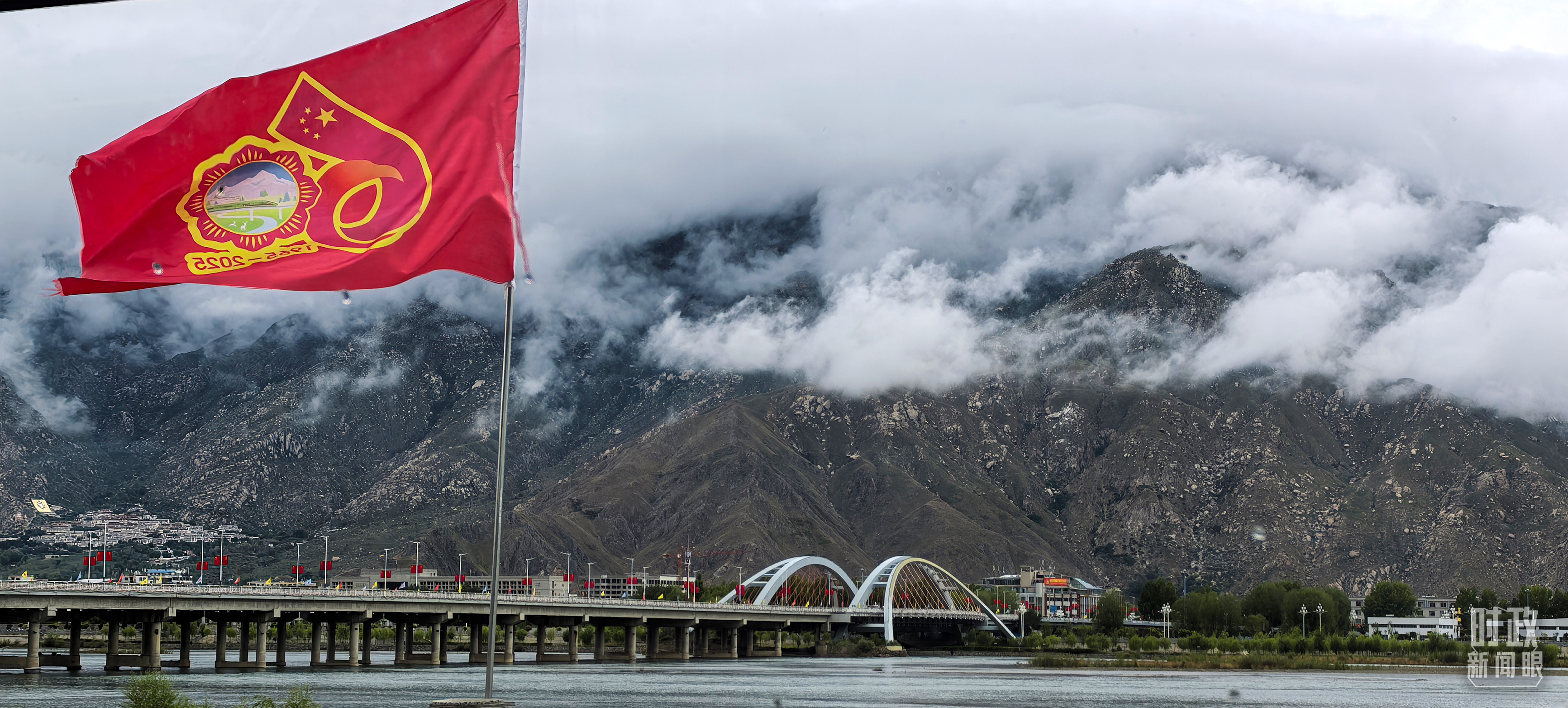 西藏自治區(qū)成立60周年標識。(總臺央視記者韓銳拍攝)
