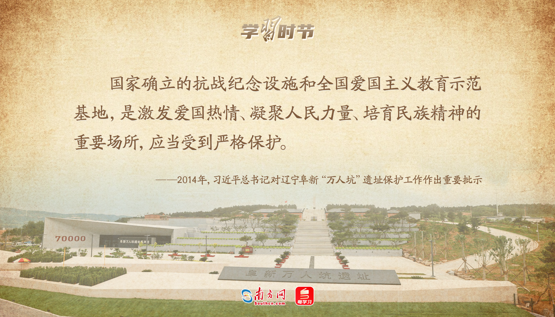 2014年9月,一份反映遼寧阜新“萬人坑”遺址遭破壞的報告送到了習(xí)近平總書記的案頭。習(xí)近平總書記對此寫下大段批示,要求遼寧省委、省政府和國家文物局要以高度的政治責任感,迅速落實對阜新“萬人坑”死難礦工紀念館的維修改善工作,盡早恢復(fù)其愛國主義教育基地功能?!坝蓄愃聘沸虑闆r的,務(wù)必抓緊進行維修,切實做好保護、利用工作,充分發(fā)揮其在加強愛國主義教育、培育社會主義核心價值觀中的重要作用。”