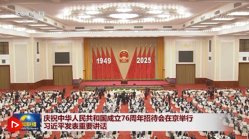 慶祝中華人民共和國成立76周年招待會30日晚在人民大會堂舉行。中共中央總書記、國家主席、中央軍委主席習(xí)近平出席招待會并發(fā)表重要講話。他強調(diào),實現(xiàn)中華民族偉大復(fù)興是前無古人的偉大事業(yè)。憧憬和挑戰(zhàn),都激發(fā)我們只爭朝夕、永不懈怠的奮斗精神。我們要更加緊密地團結(jié)在黨中央周圍,銳意進取、埋頭苦干,奮力譜寫中國式現(xiàn)代化更加絢麗的篇章。