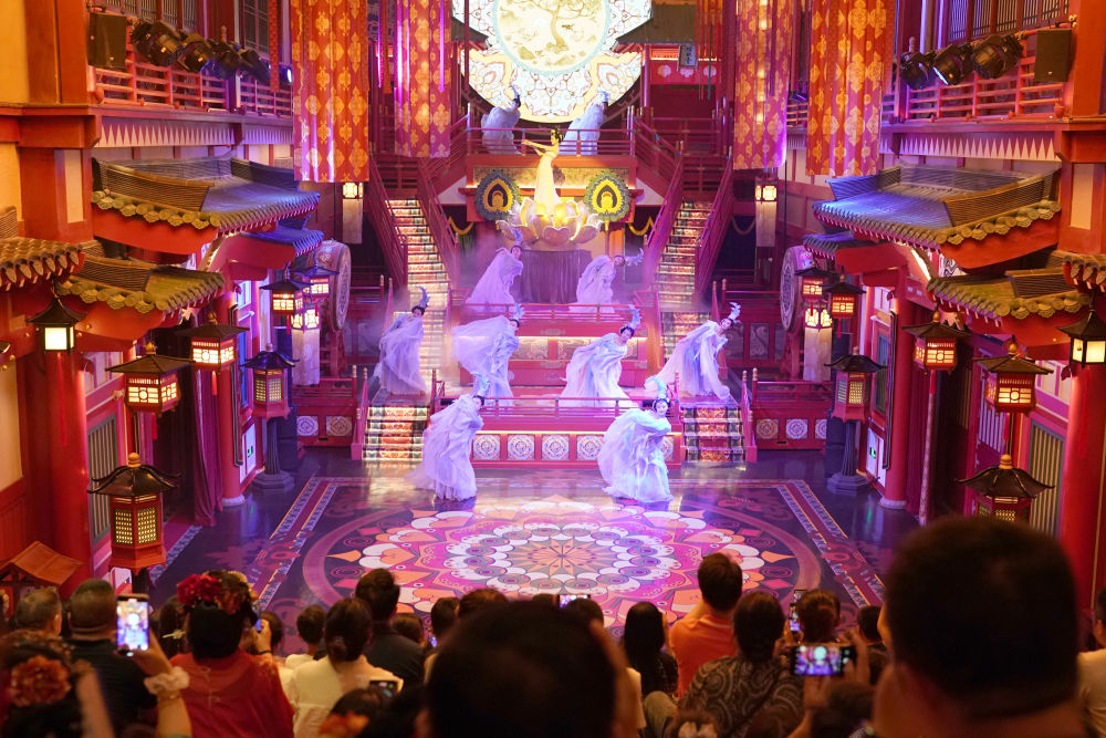 2024年5月19日,游客在西安長安十二時(shí)辰景區(qū)觀看表演《霓裳羽衣舞》。“長安十二時(shí)辰”主題街區(qū)將唐朝文化與現(xiàn)代旅游相結(jié)合,讓游客仿佛置身于千年前的長安城。近年來,西安積極推進(jìn)產(chǎn)業(yè)升級(jí)和文旅融合,以中華優(yōu)秀傳統(tǒng)文化創(chuàng)新創(chuàng)造活力助推經(jīng)濟(jì)社會(huì)高質(zhì)量發(fā)展,如大唐不夜城一樣火爆“出圈”的文旅項(xiàng)目層出不窮。