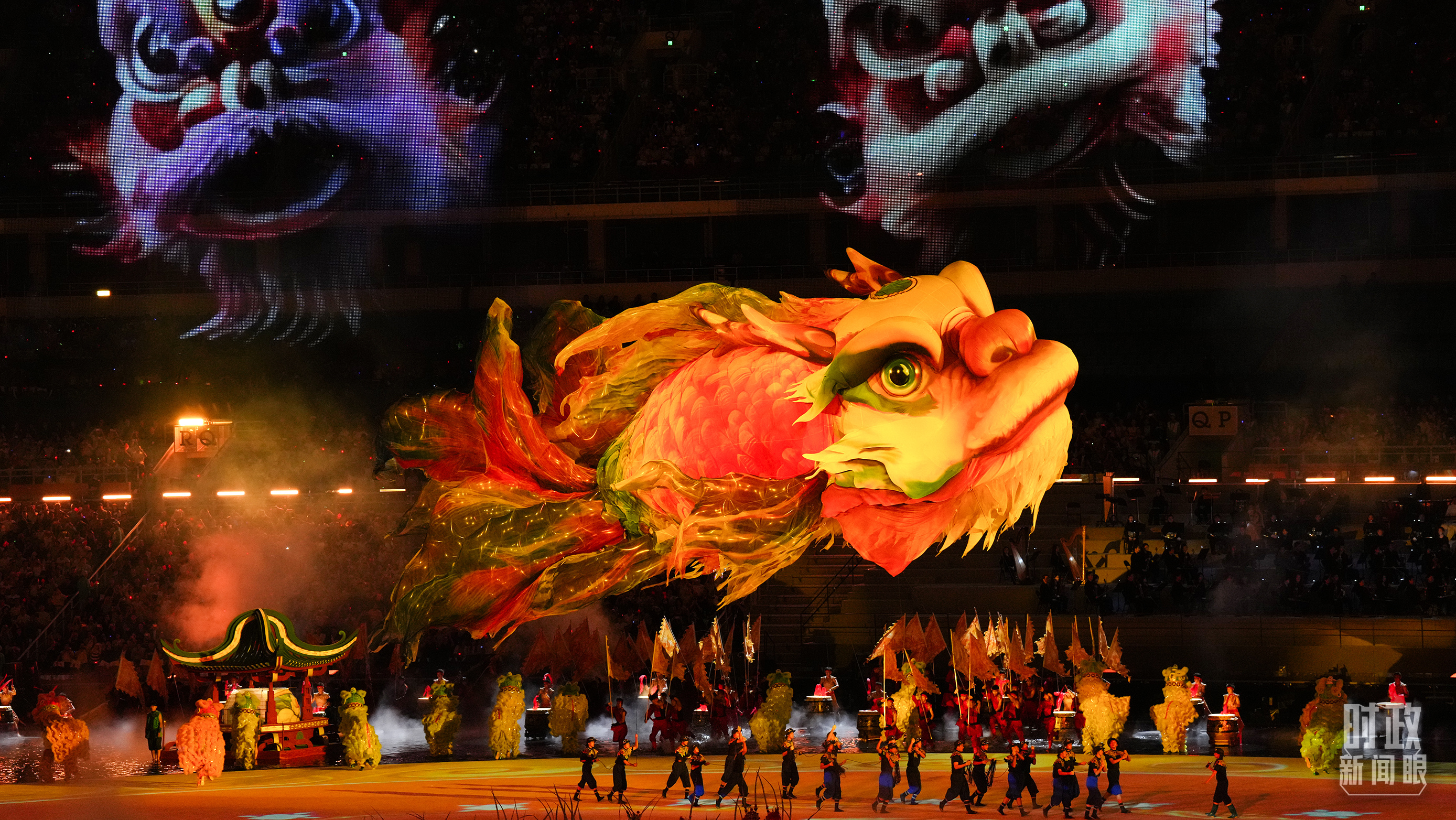 粵港澳大灣區(qū)作為全國科技重鎮(zhèn),傳統(tǒng)嶺南文化與前沿科技深度融合成為本屆全運會開幕式的一大亮點。醒獅表演與人工智能技術(shù)相互交融,英歌鑼鼓搭配全息投影,龍舟競渡場景通過AR技術(shù)“劃”入觀眾席,一場“古今對話”的沉浸式藝術(shù)盛宴“燃動”全場?;泟?、詠春、麒麟、廣繡、嵌瓷等璀璨的嶺南文化符號巧妙融入,賦予開幕式獨特的嶺南神韻。
