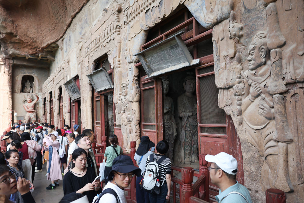 2024年11月2日,麥積山石窟藝術研究所保護研究室的文物修復師何舉在麥積山石窟133窟內(nèi)修復塑像。近年來,麥積山石窟藝術研究所等文物保護部門持續(xù)加大對麥積山石窟的搶救性保護和預防性保護工作力度,積極探索現(xiàn)代科學技術手段與傳統(tǒng)文物修復技藝相結合的保護修復新路徑。截至目前,麥積山石窟已有80個洞窟完成整體保護修復工作。