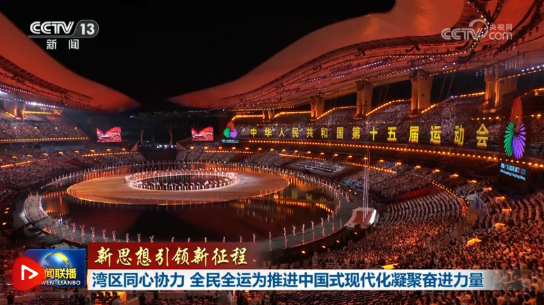 央視網(wǎng)消息(新聞聯(lián)播):習(xí)近平總書(shū)記近日在廣東考察并出席第十五屆全運(yùn)會(huì)開(kāi)幕式時(shí)指出,通過(guò)舉辦這場(chǎng)盛會(huì),可以激發(fā)愛(ài)國(guó)熱情,拉緊精神紐帶,促進(jìn)開(kāi)放合作、互利共贏,為大灣區(qū)建設(shè)營(yíng)造良好氛圍。從11月9日至21日,由粵港澳三地共同舉辦的這屆全運(yùn)會(huì),燃動(dòng)大灣區(qū),生動(dòng)詮釋體育的激情與魅力;三地同心協(xié)力、交流融合,讓大灣區(qū)煥發(fā)新的光彩。11月21日晚,本屆全運(yùn)會(huì)閉幕。這屆盛會(huì)不僅展示了新時(shí)代中國(guó)體育事業(yè)發(fā)展的新成就,也生動(dòng)展現(xiàn)了中國(guó)式現(xiàn)代化在粵港澳大灣區(qū)的萬(wàn)千氣象。