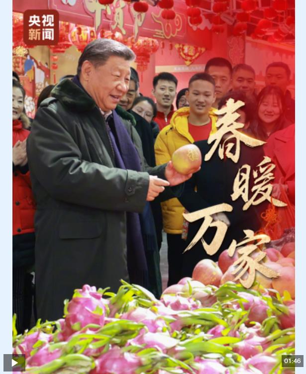每到新春佳節(jié),習近平總書記總會同人民群眾在一起,聽民聲、話家常,關(guān)注“小家”的溫暖煙火;看變化、謀發(fā)展,擘畫“大家”的幸福圖景。