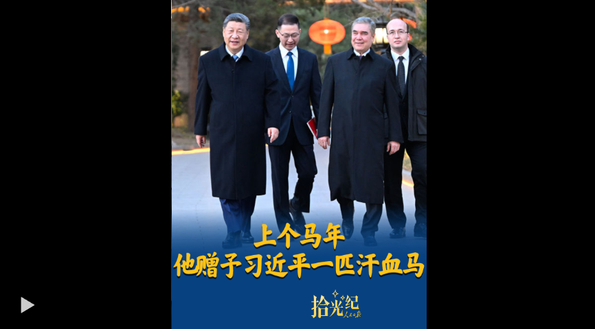 3月18日,國家主席習(xí)近平會(huì)見土庫曼斯坦民族領(lǐng)袖、人民委員會(huì)主席別爾德穆哈梅多夫。2014年,別爾德穆哈梅多夫曾贈(zèng)予中方一匹汗血馬?!巴苿?dòng)中土關(guān)系像汗血寶馬一樣馬不停蹄、一馬當(dāng)先”,一起回顧中土的“駿馬外交”。