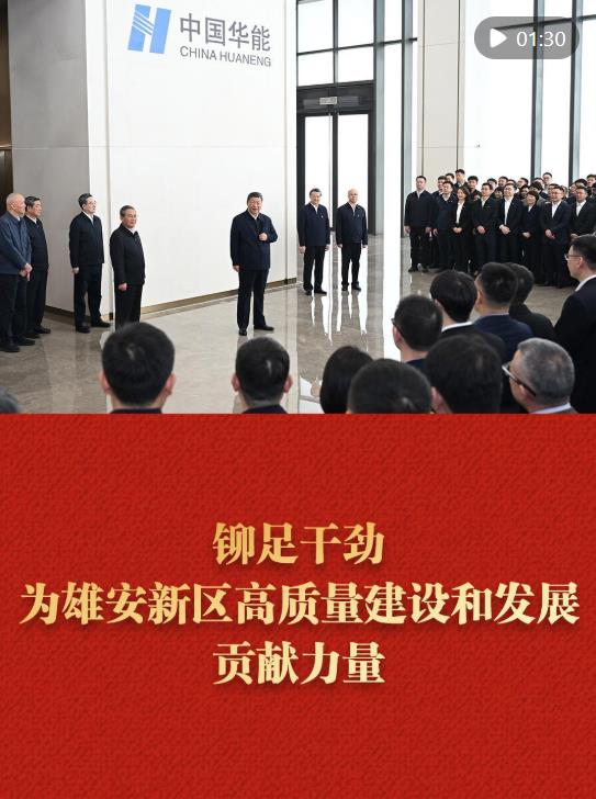 3月23日,習(xí)近平總書記來到河北雄安新區(qū),察看啟動(dòng)區(qū)建設(shè)進(jìn)展,考察中國(guó)華能集團(tuán)有限公司,了解雄安新區(qū)建設(shè)發(fā)展情況,親切慰問入駐和在建疏解單位干部職工代表?! ?/p>