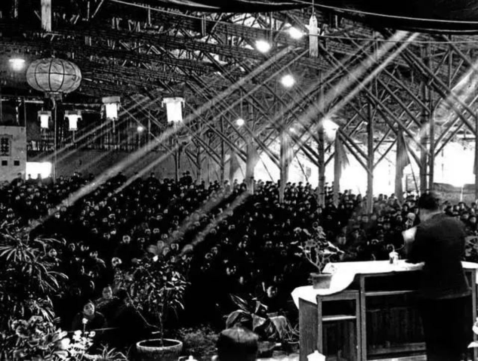 用竹篾草棚搭建的臨時大禮堂(圖片來源:西安交通大學新聞網)