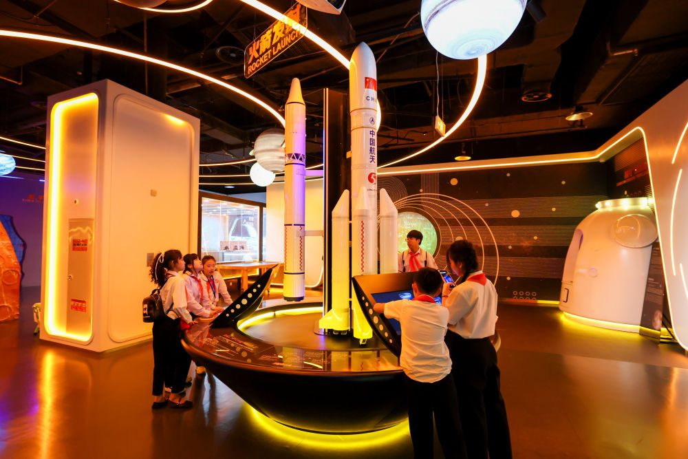 4月14日,越南青少年在位于北京的中國宋慶齡青少年科技文化交流中心了解航天知識。