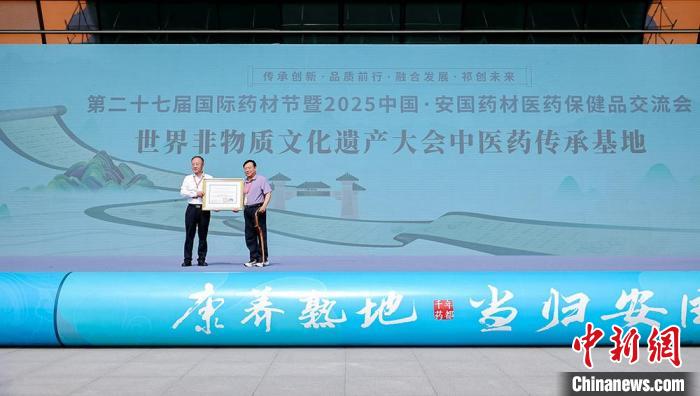 5月25日,安國(guó)市獲頒“世界非物質(zhì)文化遺產(chǎn)大會(huì)中醫(yī)藥傳承基地”榮譽(yù)證書。賈宗霖 攝