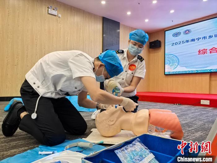 2025年南寧市鄉(xiāng)鎮(zhèn)衛(wèi)生院急救示范點(diǎn)急救技能大賽11日開賽,來自廣西南寧市67家鄉(xiāng)鎮(zhèn)衛(wèi)生院急救示范點(diǎn)的近150名骨干醫(yī)務(wù)人員展開角逐。