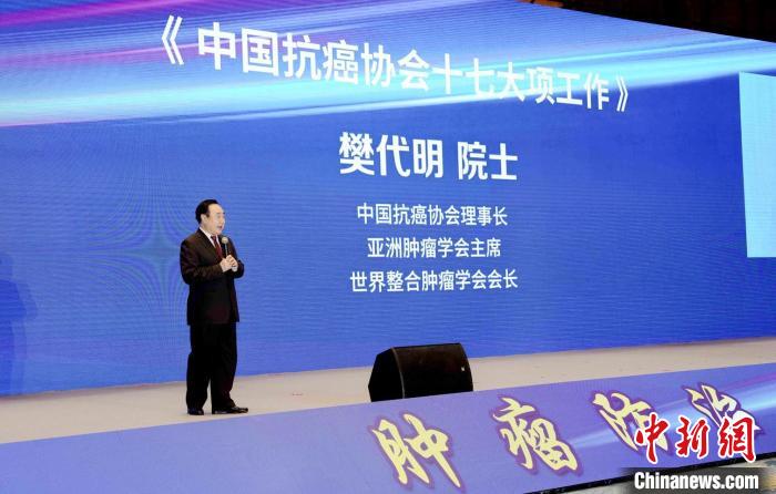 圖為中國(guó)抗癌協(xié)會(huì)理事長(zhǎng)樊代明院士發(fā)言。主辦方 供圖
