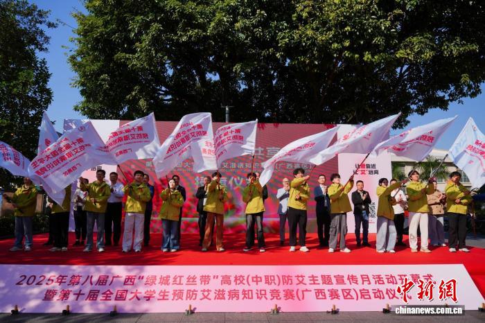 圖為第十屆全國大學生預(yù)防艾滋病知識競賽(廣西賽區(qū))授旗儀式現(xiàn)場。主辦方 供圖