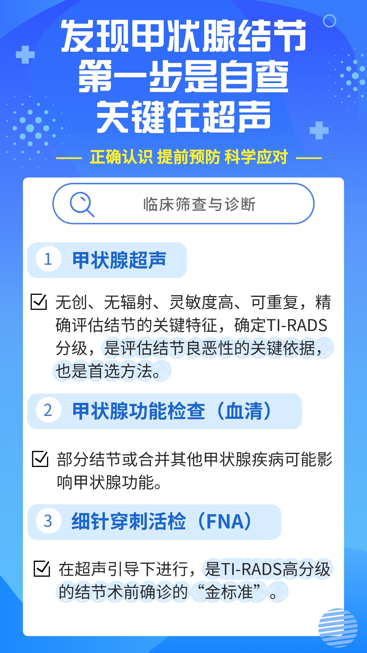 不少人的體檢報(bào)告中是不是出現(xiàn)了“甲狀腺結(jié)節(jié)”的診斷提示?別慌,絕大多數(shù)結(jié)節(jié)是良性的,只要正確認(rèn)識(shí)、提前預(yù)防、科學(xué)應(yīng)對(duì),就能輕松掌握主動(dòng)權(quán),消除不必要的恐慌。