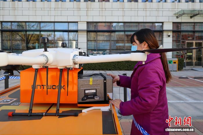 12月1日,天津市首條常態(tài)化無人機(jī)運輸血液制品航線正式啟用。(中新天津生態(tài)城供圖)