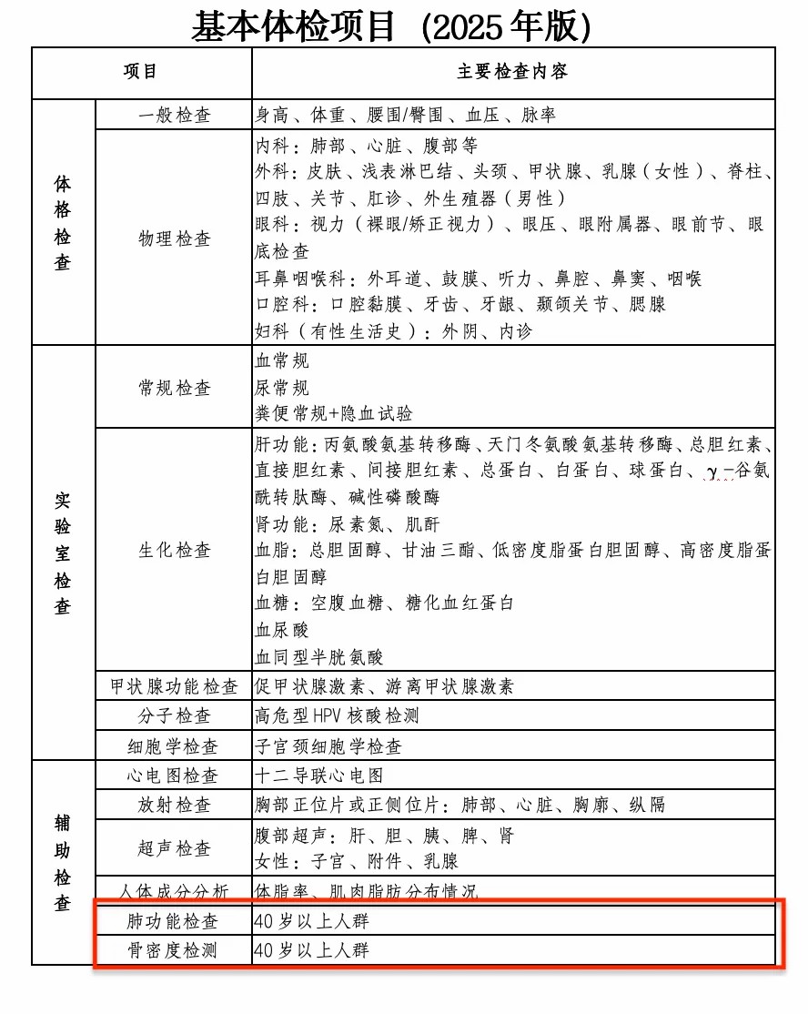 很多人每年體檢都在糾結(jié):體檢項(xiàng)目一大堆,到底該查什么?隨著年齡增加,器官也在衰老,查多了怕浪費(fèi)錢,查少了又怕漏掉重點(diǎn)……國家衛(wèi)健委今年10月底發(fā)布了《成人健康體檢項(xiàng)目推薦指引(2025年版)》,明確推薦了40歲以上必做的兩項(xiàng)檢查。