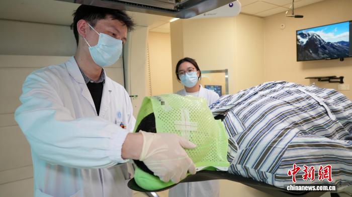 武漢協(xié)和醫(yī)院放療科治療師為患者進行質(zhì)子治療?!⒗ぞS 攝