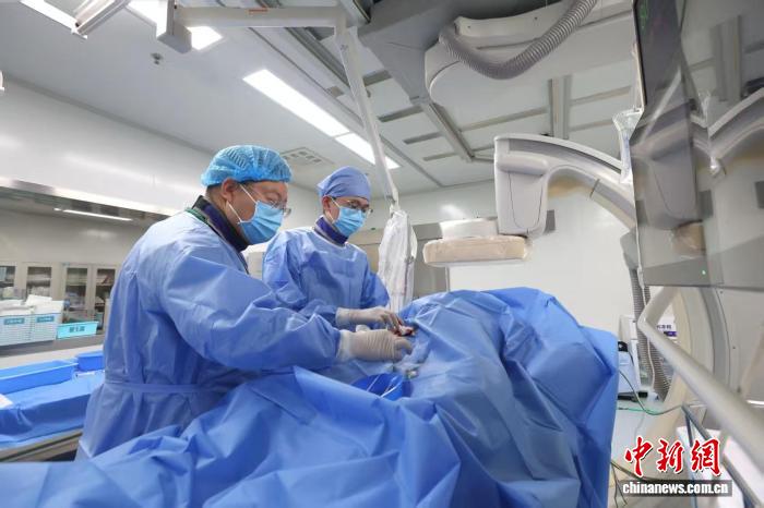 襄陽市中醫(yī)醫(yī)院醫(yī)生進(jìn)行膝骨關(guān)節(jié)炎介入手術(shù)。(資料圖)襄陽市中醫(yī)醫(yī)院供圖