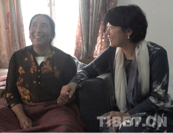 這是幫助強(qiáng)巴卓嘎聯(lián)系治病的北京安貞醫(yī)院小兒心臟病專家顧虹(右)看望離京返藏前的強(qiáng)巴卓嘎(左)時,與她相互交流,回憶治病過程。(唐召明2019年9月30日攝)