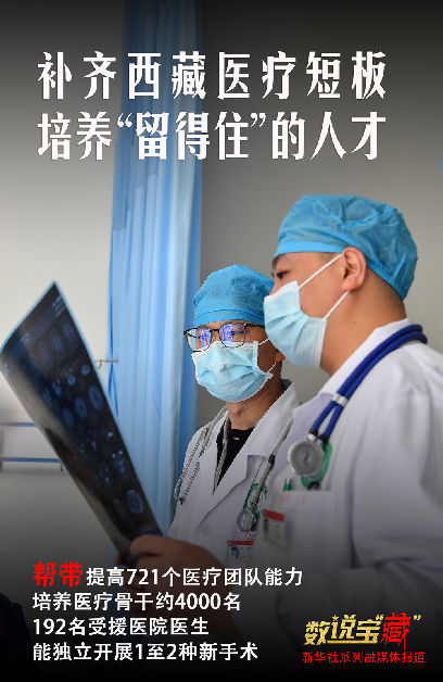 醫(yī)療人才“組團(tuán)式”援藏實(shí)施以來(lái),共幫帶721個(gè)醫(yī)療團(tuán)隊(duì)、2031名本地醫(yī)務(wù)人員、培養(yǎng)醫(yī)療骨干約4000名,已有192名受援醫(yī)院的醫(yī)生能獨(dú)立開(kāi)展1種至2種新手術(shù),實(shí)現(xiàn)了400多種較大疾病不出藏,大多數(shù)“中病”不出市(地)就能得到治療。