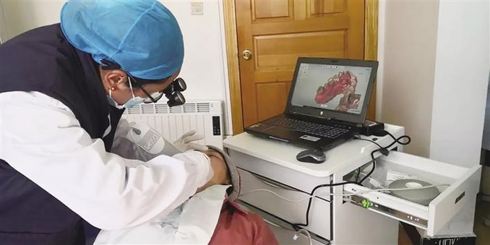 西藏自治區(qū)人民醫(yī)院口腔科醫(yī)生正在進行口內(nèi)掃描操作。 圖由自治區(qū)人民醫(yī)院提供