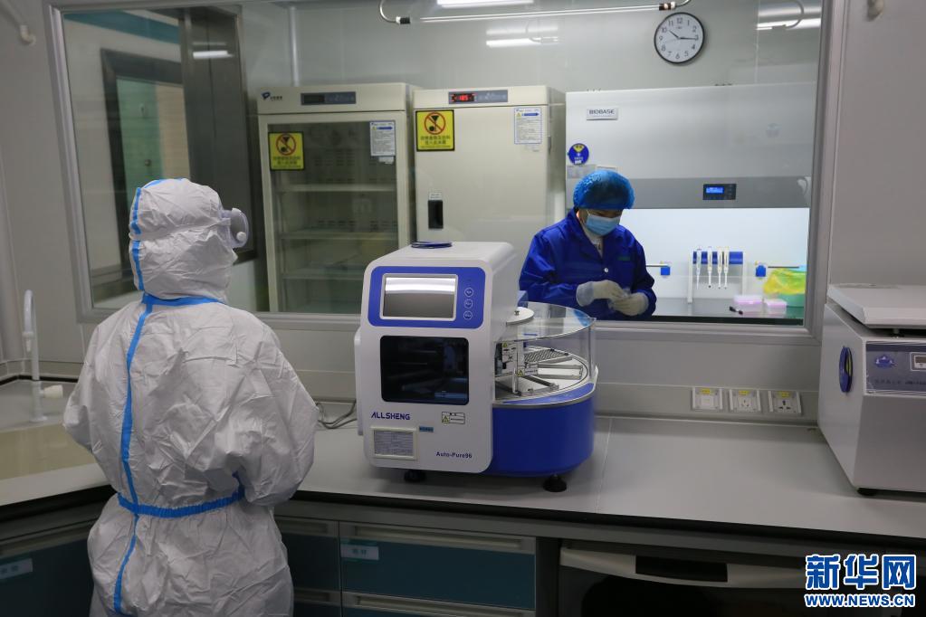 工作人員模擬核酸檢測(cè)流程(4月14日攝)新華社記者 司源攝