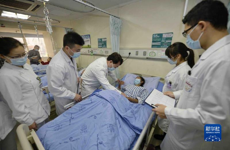 12月3日,在四川大學華西醫(yī)院,王文濤(中)在病房內查看包蟲病患者病情。新華社記者 劉坤 攝