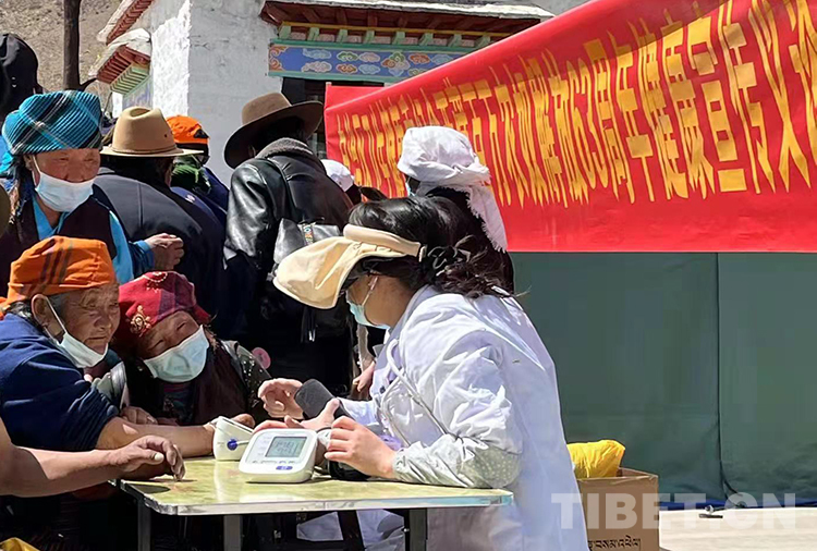 圖為西藏自治區(qū)4家自治區(qū)級醫(yī)院專家在拉薩市林周縣強嘎鄉(xiāng)為當地群眾義診