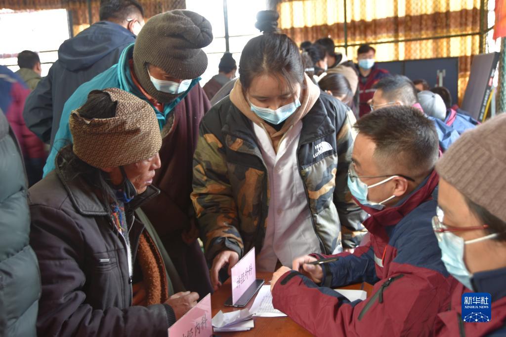 3月23日,援藏醫(yī)生詢問村民病情。新華社記者 劉文博 攝