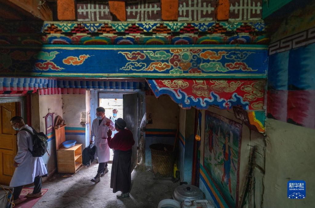 6月12日,王振疆(右)為吞不絨村89歲的村民娘姑進(jìn)行檢查。新華社記者 費(fèi)茂華 攝