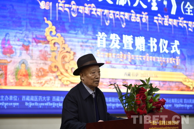 西藏藏醫(yī)藥大學(xué)米瑪校長(zhǎng)代表主辦方在致辭中表示,《大全》是集藏醫(yī)藥學(xué)界之力的一項(xiàng)重大成果,以西藏藏醫(yī)藥大學(xué)為例,作為藏醫(yī)藥研究的重要力量,在《大全》編纂整理過(guò)程中,先后派駐多名業(yè)務(wù)骨干前往成都喜馬拉雅文庫(kù)參與審讀。國(guó)醫(yī)大師旺堆教授更是親點(diǎn)20名學(xué)識(shí)深厚的中青年教師,組成《大全》的拉薩審讀分部,為全書的高品質(zhì)問(wèn)世做出了應(yīng)有的貢獻(xiàn)。