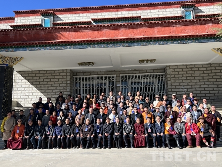 圖為參加《藏醫(yī)藥文獻(xiàn)大全》(全206冊(cè))首發(fā)暨贈(zèng)書儀式的嘉賓合影留念 攝影:德吉卓瑪