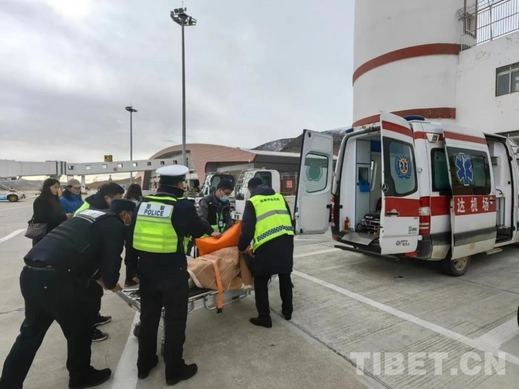 圖為邦達(dá)機(jī)場工作人員將嘎吉送上機(jī)場救護(hù)車