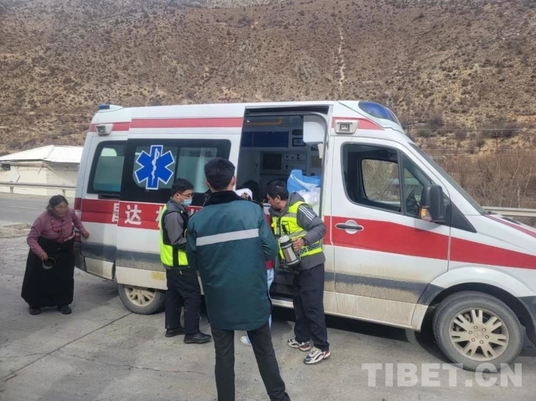 “沒事的,來,深呼吸。我們在去醫(yī)院的路上,昌都市人民醫(yī)院的急救車也正在趕過來,不用擔(dān)心?!彪S車的陳祿彥醫(yī)生不停安慰著嘎吉,并不停觀察著她的情況。
