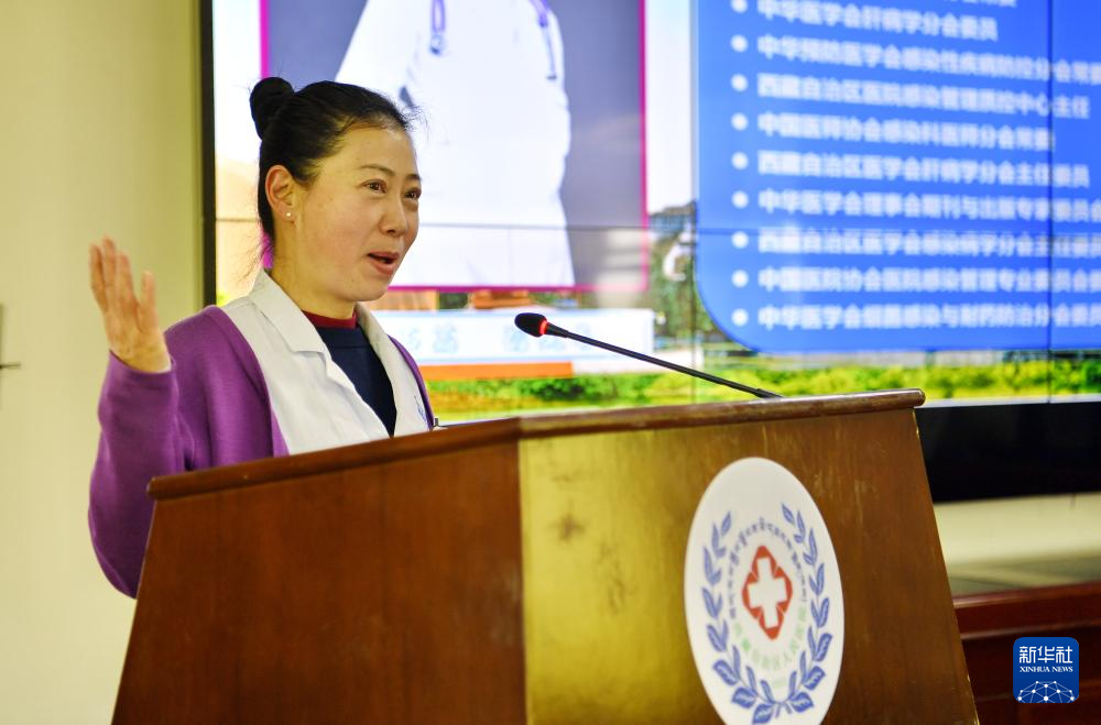 4月3日,北京協(xié)和醫(yī)院主任醫(yī)師龍笑在西藏自治區(qū)人民醫(yī)院做學(xué)術(shù)報告。新華社記者 張汝鋒 攝