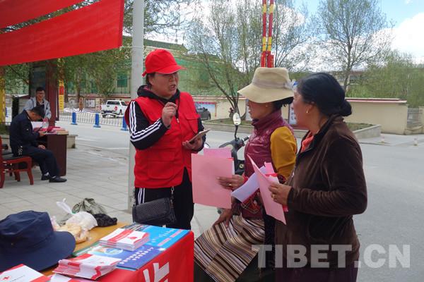 中國(guó)西藏網(wǎng)訊 為紀(jì)念第71個(gè)“世界紅十字日”,進(jìn)一步弘揚(yáng)“人道、博愛(ài)、奉獻(xiàn)”的紅十字精神, 5月8日,四川省甘孜藏族自治州甘孜縣紅十字會(huì)在縣機(jī)場(chǎng)大道十字路口開(kāi)展以“弘揚(yáng)‘人道、博愛(ài)、奉獻(xiàn)’紅十字精神,共創(chuàng)和諧美麗幸福新甘孜”為主題的宣傳活動(dòng)。
