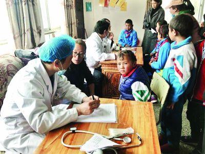 今年3月底,陳德明在乃東區(qū)結(jié)巴完小給學(xué)生體檢 本人供圖