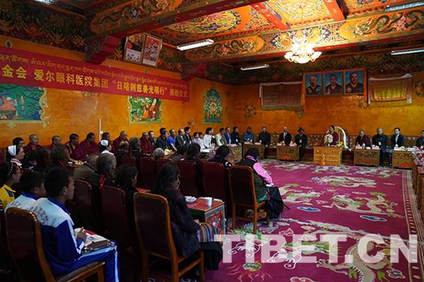 圖為“日喀則慈善光明行”捐贈(zèng)儀式現(xiàn)場(chǎng)。攝影:王淑