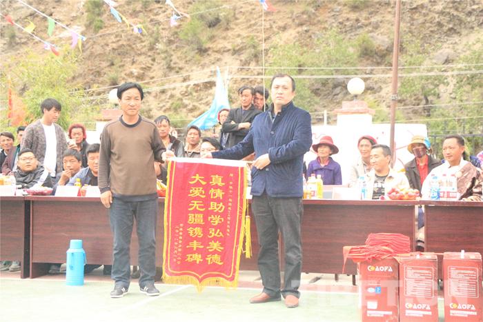 圖為曲登鄉(xiāng)小學(xué)向中鐵十一局二公司國道318項(xiàng)目贈送錦旗。