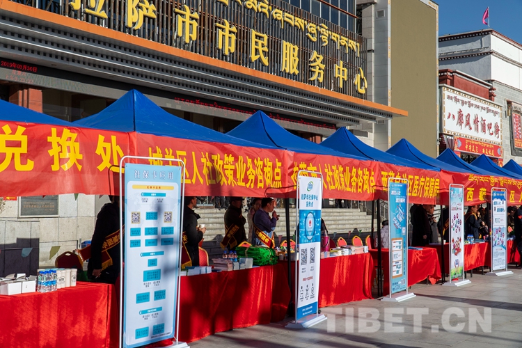 圖為西藏自治區(qū)人力資源和社會保障廳舉行的社??ㄗ稍冃麄骰顒蝇F(xiàn)場。