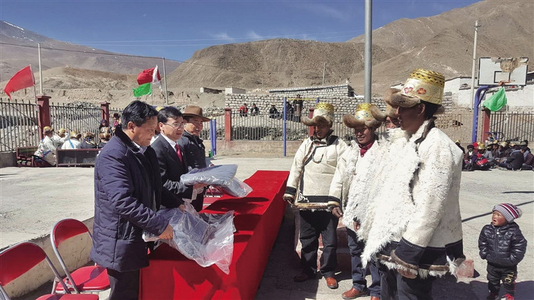 援助西藏發(fā)展基金會阿媽倉慈善專項基金相關(guān)部門負責人、知名藏醫(yī)專家、日喀則市中級人民法院黨組成員、日喀則市中級人民法院所駐6個行政村“兩委”主要成員、各駐村工作隊代表,以及村醫(yī)和近百名貧困群眾等參加了捐贈和義診啟動儀式。