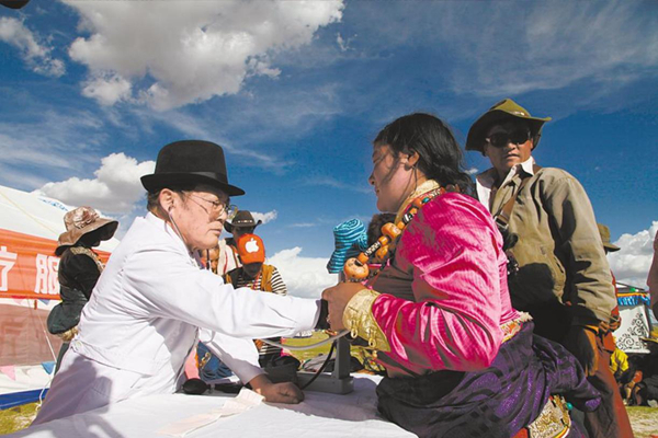 吳天一在牧區(qū)為藏族群眾義診。省高原醫(yī)學(xué)科學(xué)研究院供圖