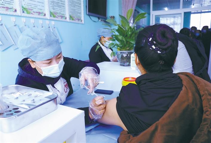 圖為城關(guān)區(qū)轄區(qū)重點人群正在接種疫苗。 記者 格桑倫珠 本報通訊員 陳海兵 實習(xí)生 尼瑪拉珍 攝