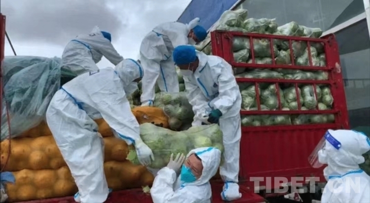 妻子順利生產(chǎn)后,陳建軍懸著的心終于落下,安心投入到疫情防控工作中,為了打通日喀則市生活保障物資的“最后一公里”,日喀則邊境管理支隊(duì)派出應(yīng)急增援力量,身穿防護(hù)服,化身“搬運(yùn)工”,執(zhí)行生活物資的緊急搬運(yùn)任務(wù),陳建軍就在其中。