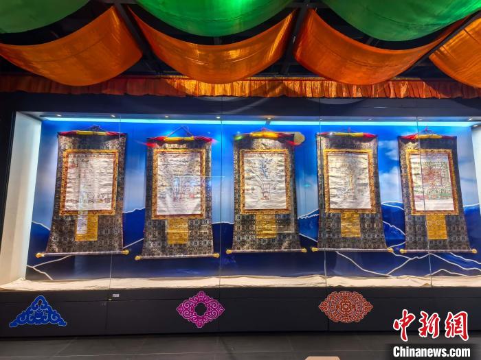 展覽現(xiàn)場(chǎng)展示的五幅珍貴曼唐。廣州中醫(yī)藥大學(xué)供圖