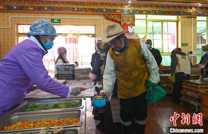 圖為2024年1月27日,西藏薩迦縣特困人員集中供養(yǎng)中心的老人們在排隊(duì)打飯。資料圖 趙朗 攝