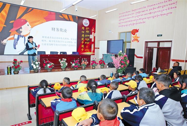 工作人員為學(xué)生們講解防詐騙、防欺凌等知識(shí)。記者 格桑倫珠 攝